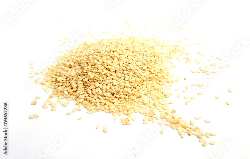 Sesame seeds on white background