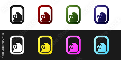 Set Airplane window icon isolated on black and white background. Aircraft porthole. Vector