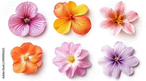 Set Assorted pastel flowers arranged in a grid