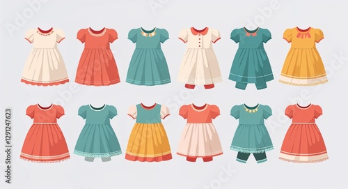 Set bundle of babydoll dress minimalist childish style illustration on plain white background