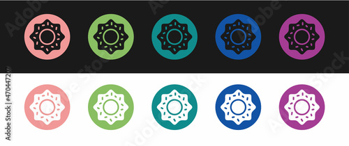 Set Donut with sweet glaze icon isolated on black and white background. Vector