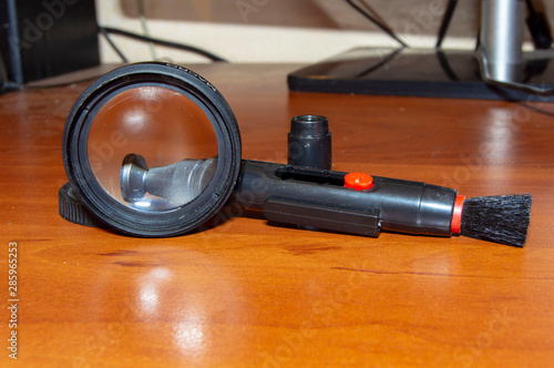 Set for cleaning glasses and mirrors for the camera on a white background.