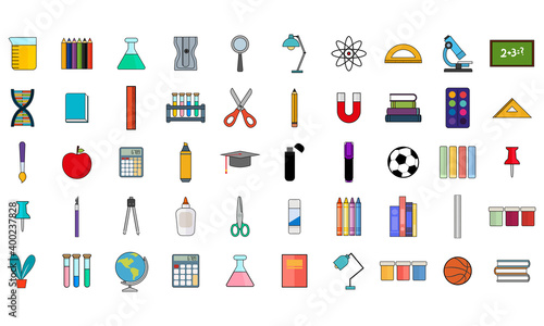 Set group of tools back to school picture icon - Vector