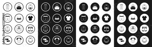 Set Hoodie, Bra, Cycling shorts, Leggings, T-shirt, Handbag, Short pants and icon. Vector