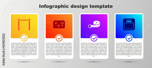Set Horizontal bar, Fitness club, gym card, Tape measure and Bathroom scales. Business infographic template. Vector