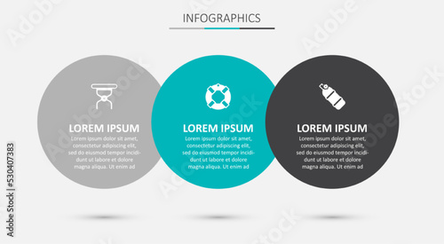Set Lifebuoy, Camping folding chair and Aqualung. Business infographic template. Vector