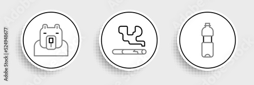 Set line Bottle of water, Polar bear head and Cigarette icon. Vector