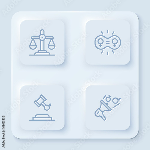 Set line Gender equality, Female rights and Feminist activist. White square button. Vector