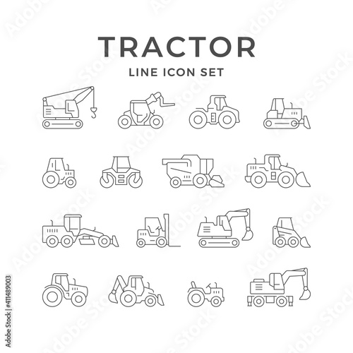 Set line icons of tractors