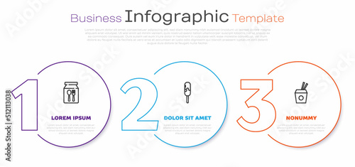 Set line Online ordering and delivery, Ice cream and Asian noodles chopsticks. Business infographic template. Vector