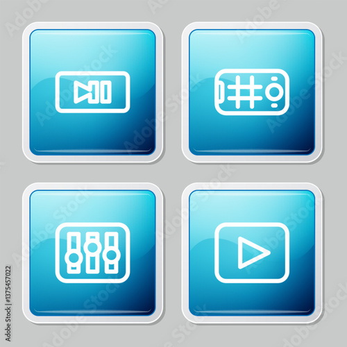 Set line Pause button, Selfie mobile, Sound mixer controller and Play icon. Vector