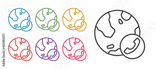 Set line Video chat conference icon isolated on white background. Online meeting work form home. Remote project management. Set icons colorful. Vector