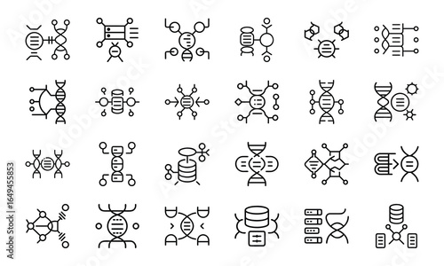 Set of 24 Science and Laboratory Line Icons Chemistry, Biology, Physics, Research, Safety, and Technology Symbols in Minimal Outline Style