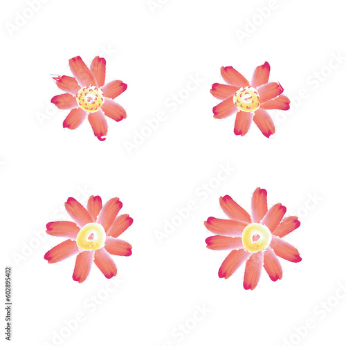 Set of 4 red and pink Watercolor flower illustration icons, simple beautiful composition of decorative elements, isolated on grey background, hand drawing.