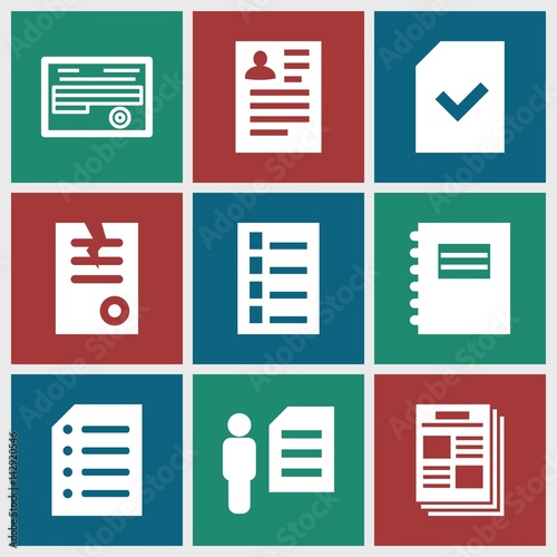 Set of 9 document filled icons