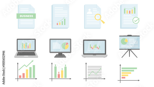 Set Of Analysis Data Vector Illustrations, Business Icons set
