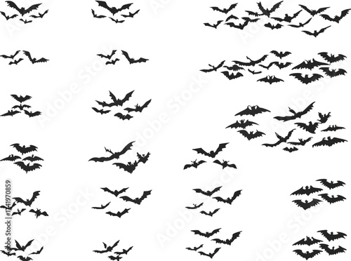 Set of bats flying isolated on white