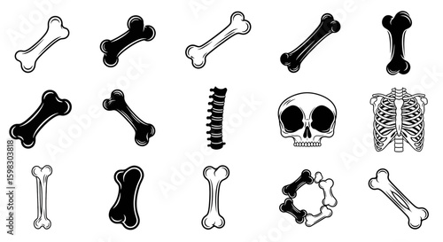 set of bone icons of vector illustration for web and mobile, black and white, icon, vector, bones, skull, health. medical