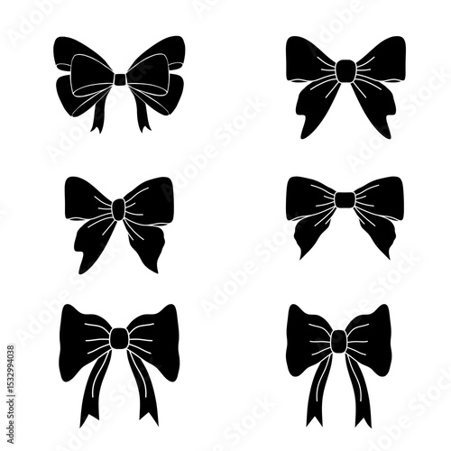 Set of Bow Silhouette Icons – Handmade Ribbon, Tie, and Hair Bow Clip art for Parties