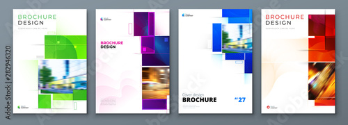 Set of Brochure Cover Template Layout Design. Corporate business annual report, catalog, magazine, flyer mockup. Creative modern bright concept with square shape