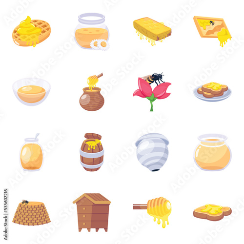 Set of Bumblebee Flat Icons