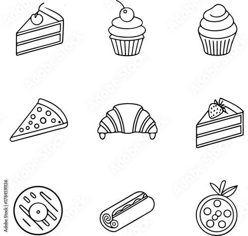 set of cakes and sweets