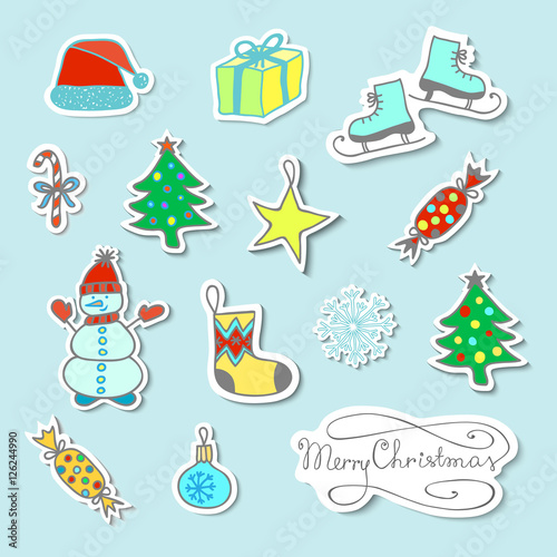 Set Of Cartoon Christmas Stickers