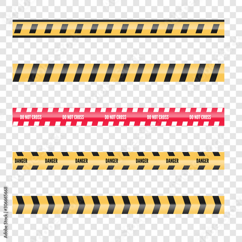 Set of caution danger tapes. Warning security vector. Barricade lines. Do not cross