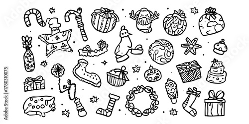 Set of christmas doodles isolated on white background. handrawn christmas element stock design