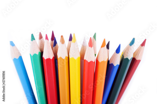 Set of colored pencils placed in random order