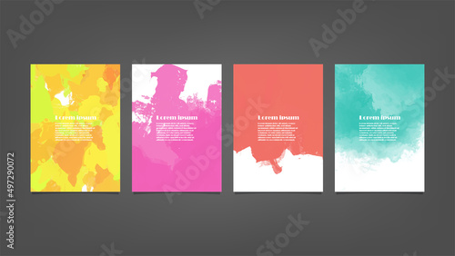 Set of colorful vector watercolor backgrounds for poster, brochure or flyer, Bundle of watercolor posters, flyers or cards. Banner template.