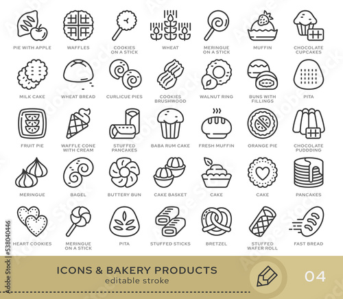 Set of conceptual icons. Vector icons in flat linear style for web sites, applications and other graphic resources. Set from the series - Bakery products. Editable stroke icon.