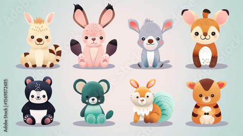 Set of Cute Animals,printable animal graphics, animal-themed classroom decor, sweet animal cartoons, whimsical animal drawings, animal group artwork