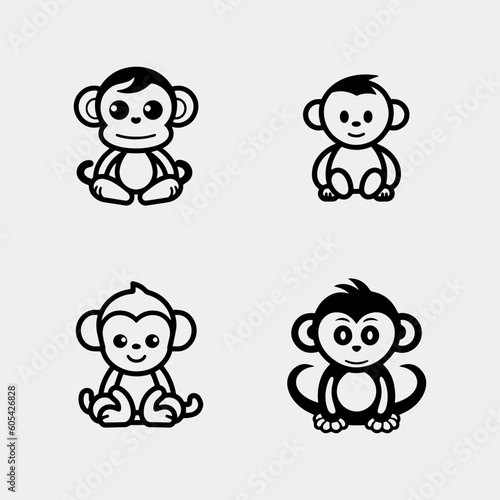 set of Cute baby monkey sitting - isolated on white background