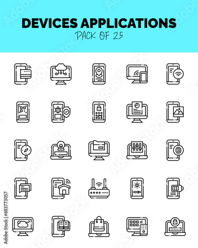 set of Devices Applications Lineal Cut icons for logo & web. Vector illustration