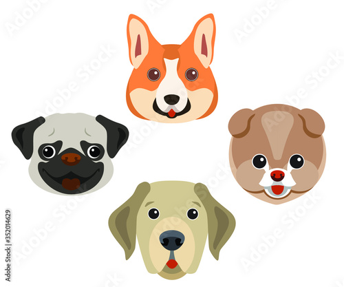 set of dogs. 4 types of dogs are depicted: Corgi, Labrodor, Pug and Spitz