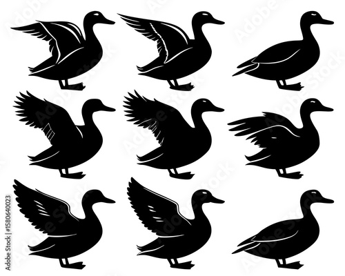 set of Duck silhouette vector on white background