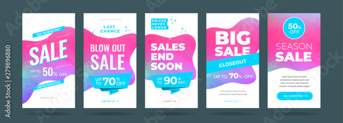 Set of dynamic modern fluid sale banner for social media stories, web page, mobile phone. Sale banner template design special offer set. Eps10 vector.