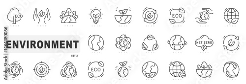 Set of environment related line icons. Earth, ecology, globe, eco etc. Editable stroke. Set 2