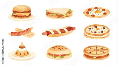 Set of fast food icons. Isolated on white background. Vector illustration.