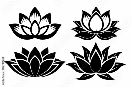 set of four lotus flowers line art silhouette vector illustration