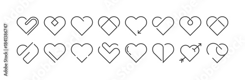 set of geometric abstract logo pink hand draw heart, red doodle line icon heart, romance love elements for Valentine's Day, heart symbol design cards, poster, banner, pattern, advertisement