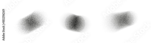 Set of grainy stipple texture spots with soft halftone noise. Abstract blurry shapes for retro designs, gradients, overlays, shading, backgrounds and minimal compositions