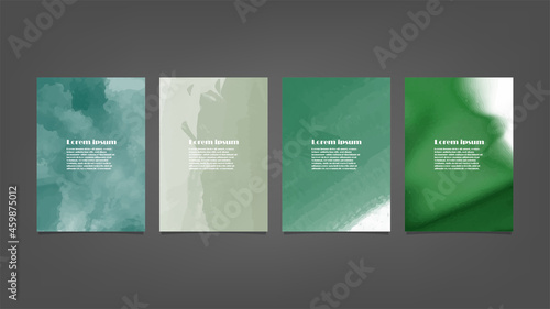 Set of green vector watercolor backgrounds for poster, brochure or flyer, Bundle of watercolor posters, flyers or cards. Banner template.