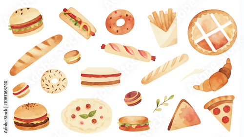 Set of hand drawn fast food icons. Vector illustration isolated on white background.