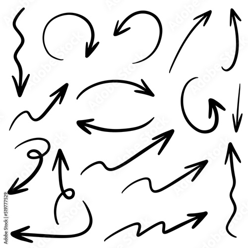 Set of Hand drawn vector arrows doodle on white background.design element vector illustration.