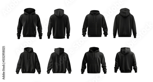 Set of hoodie template. Hoodie sweatshirt long sleeve with clipping path, hoody for design mockup for print isolated on transparent background.