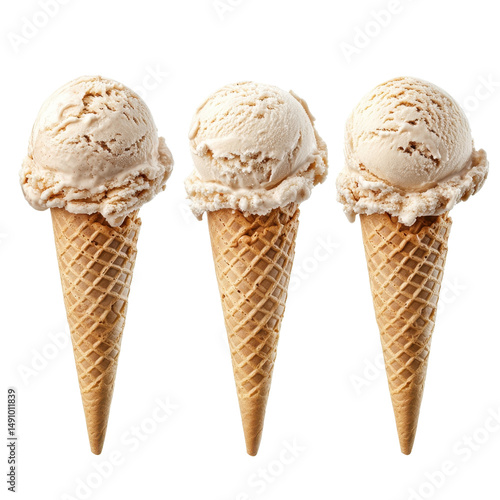 Set of ice cream cones Isolated on white transparent background