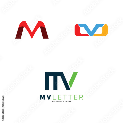 Set of Initial Letter MV Icon Vector Logo Template Illustration Design