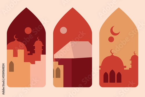 Set of Islamic window for eid al fitr. Vector illustration